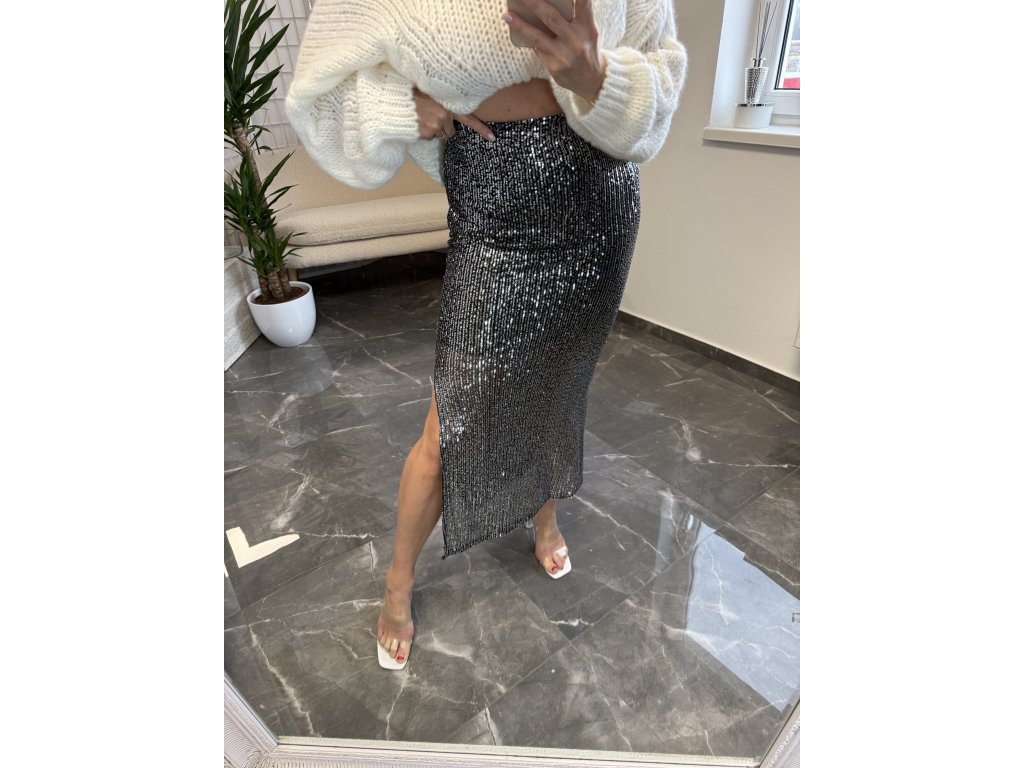 Flitrovaná midi sukňa Leysi Čierna