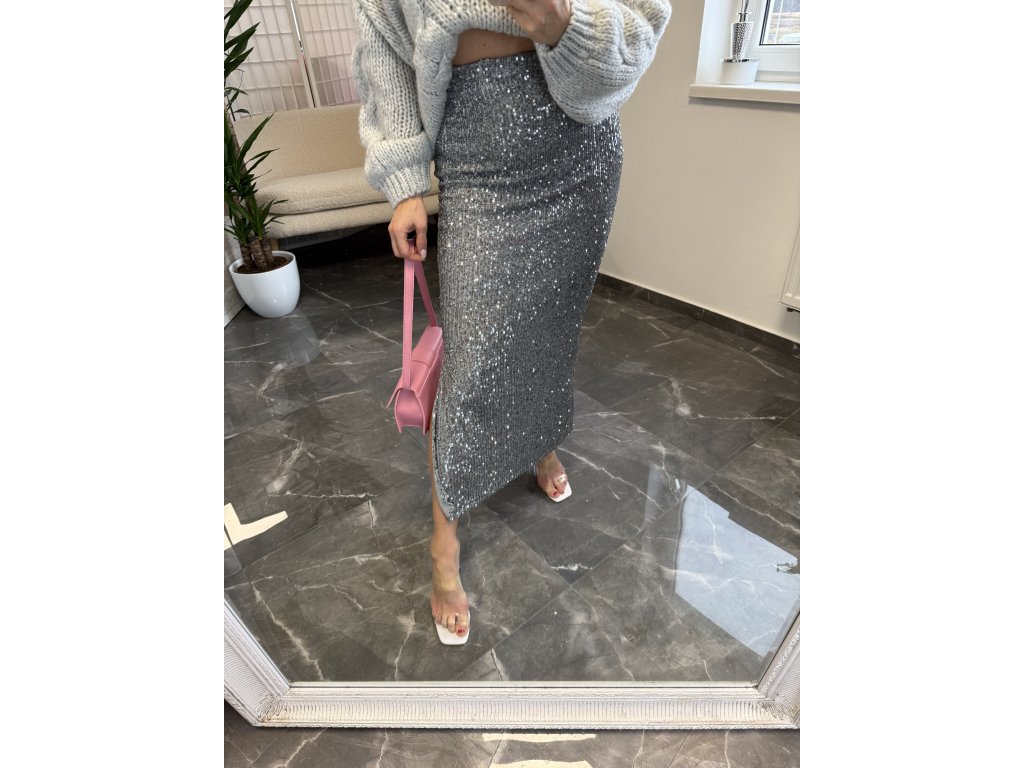 Flitrovaná midi sukňa Leysi sivá